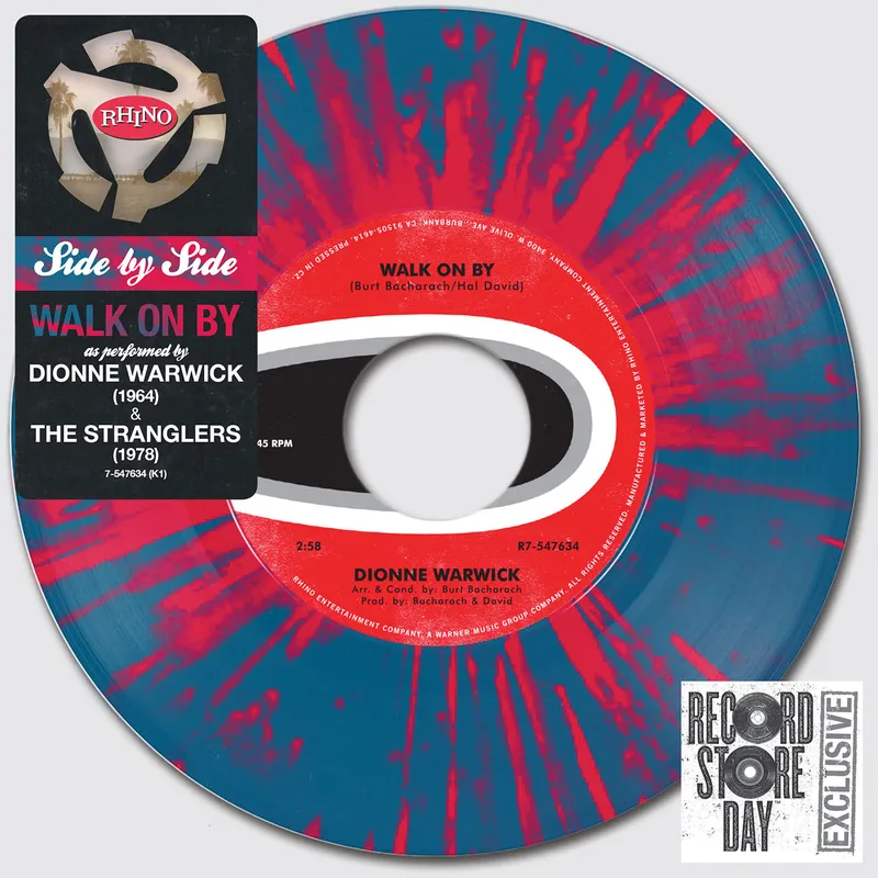 7" 45 RPM Vinyl is Heavy Magenta splatter on Aqua Blue opaque. Part of Rhino's now celebrated RSD exclusive Side By Side 7" singles series. Two artists perform the same song. Surprising and unusual performances and repertoire.